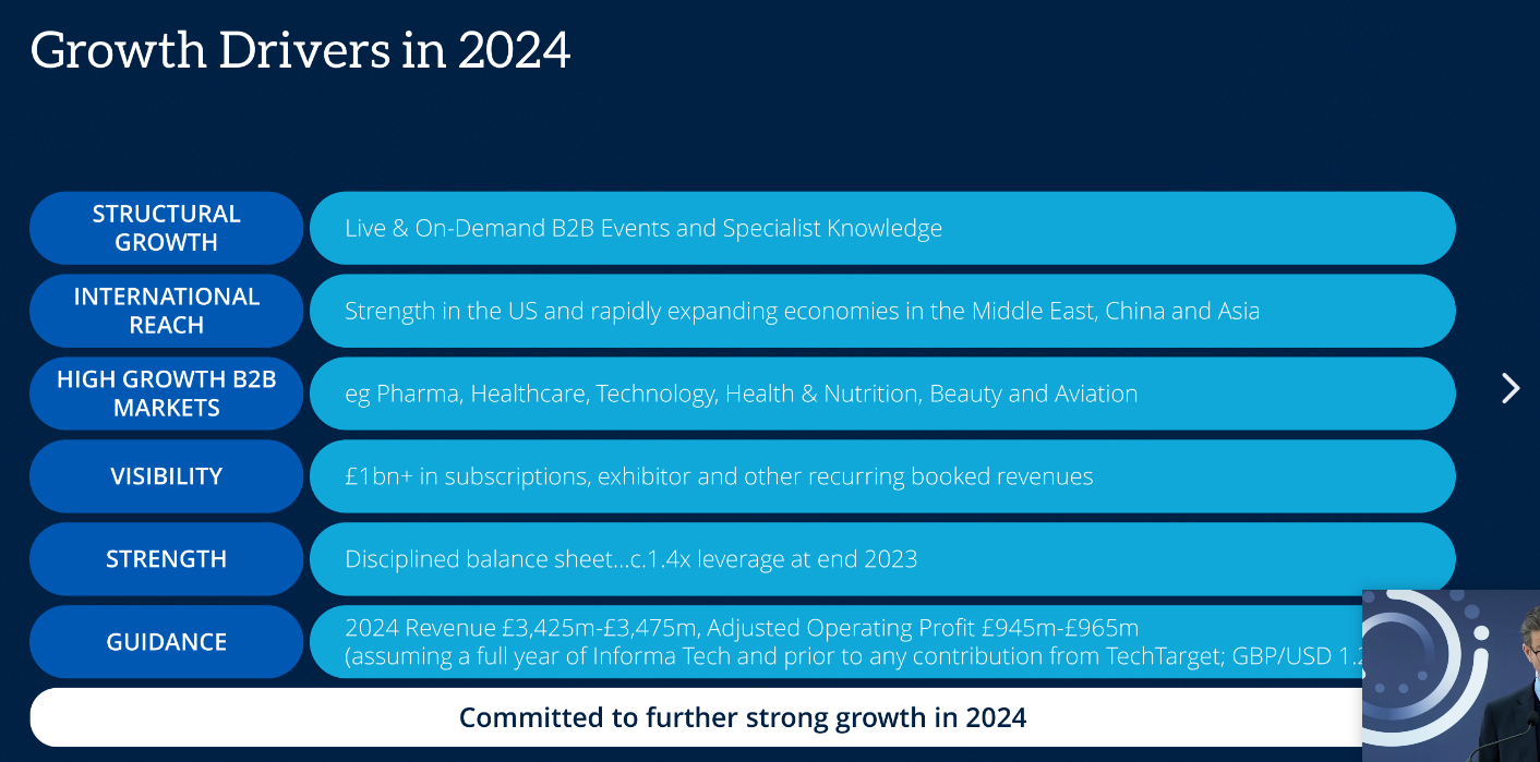 英富曼集团在2023年实现了强劲增长,营收和利润均大幅增加。集团通过有机增长和并购战略扩大了市场份额和业务规模,数字化转型也取得显著进展。2024年,集团设定了高个位数基础营收增长目标,并计划继续保持稳健增长。与TechTarget的合并将进一步提升集团的数字化服务业务。