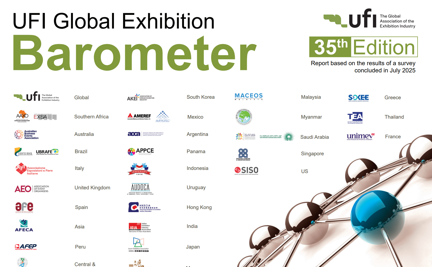 2025年7月24日,巴黎-国际展览业协会(UFI)今日发布第35次《全球展览业晴雨表》报告(UFIGlobalExhibitionBarometer,35thEdition),这份行业旗舰研究报告基于来自58个国家和地区386家企业的调研数据,全面呈现了2025年全球展览业的发展现状与前景展望。报告显示,在全球经济不确定性和地缘政治挑战的背景下,各地...