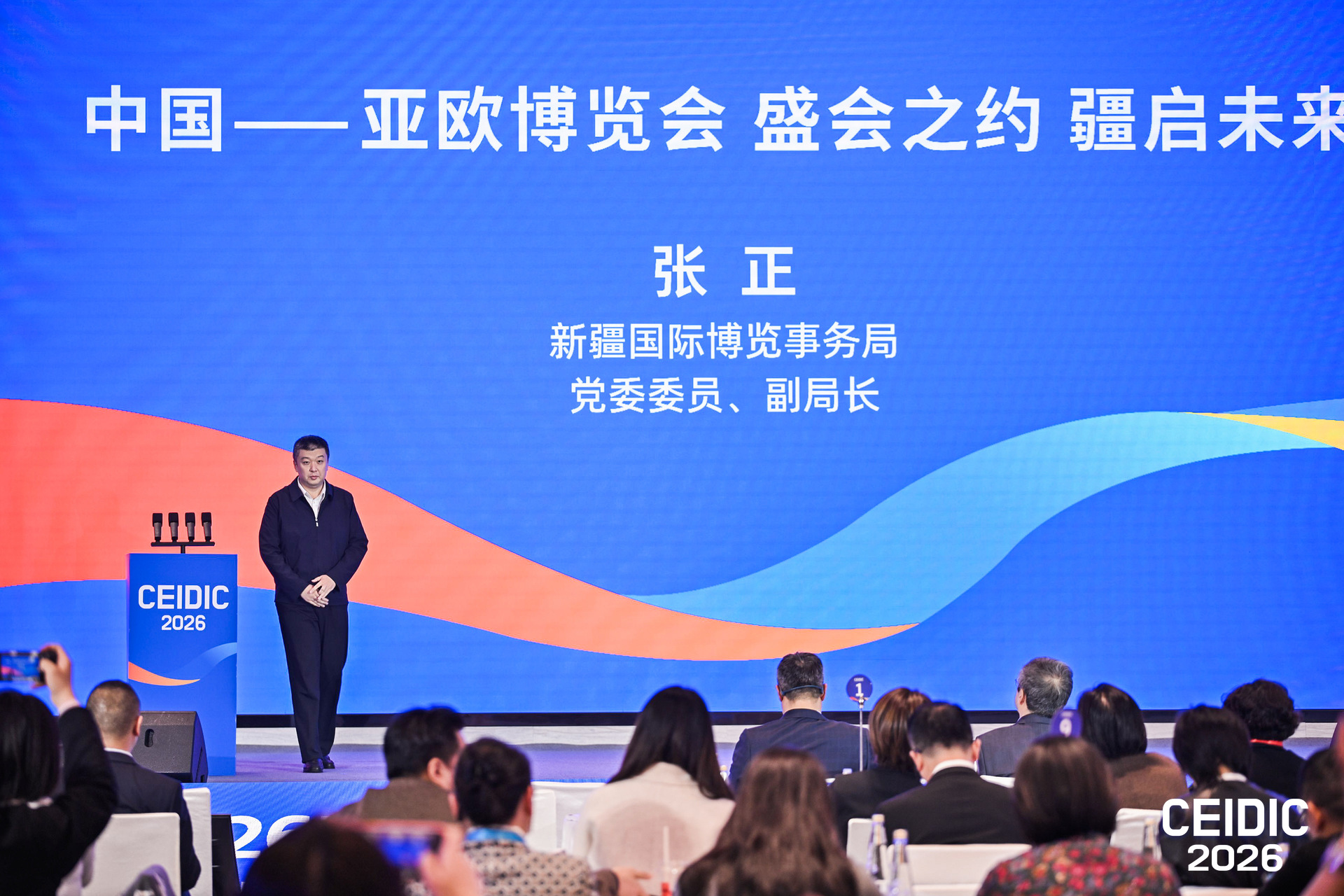 图:新疆国际博览事务局党委委员、副局长张正做主题演讲