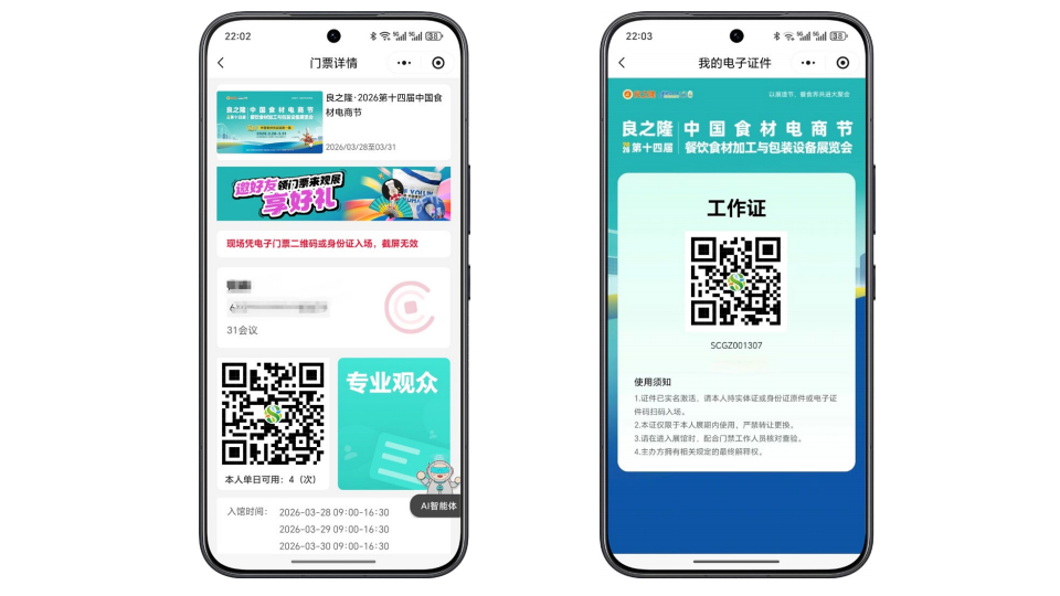 本届展会针对专业观众、主办方、展商、媒体等不同参会群体,定制打印了不同颜色的专属证件,证件内置专属入场二维码作为核心核验凭证;针对普通观众,设置二维码入场通道,仅可通过个人动态二维码完成入场核验。这套体系实现了对全品类参会人群的精准区分与精细化管理,既大幅简化了不同人群的权限划分,也为后续的现场服务、人流管控提供了清晰的分类依据,从源头规避了人员混杂带来的管理风险。