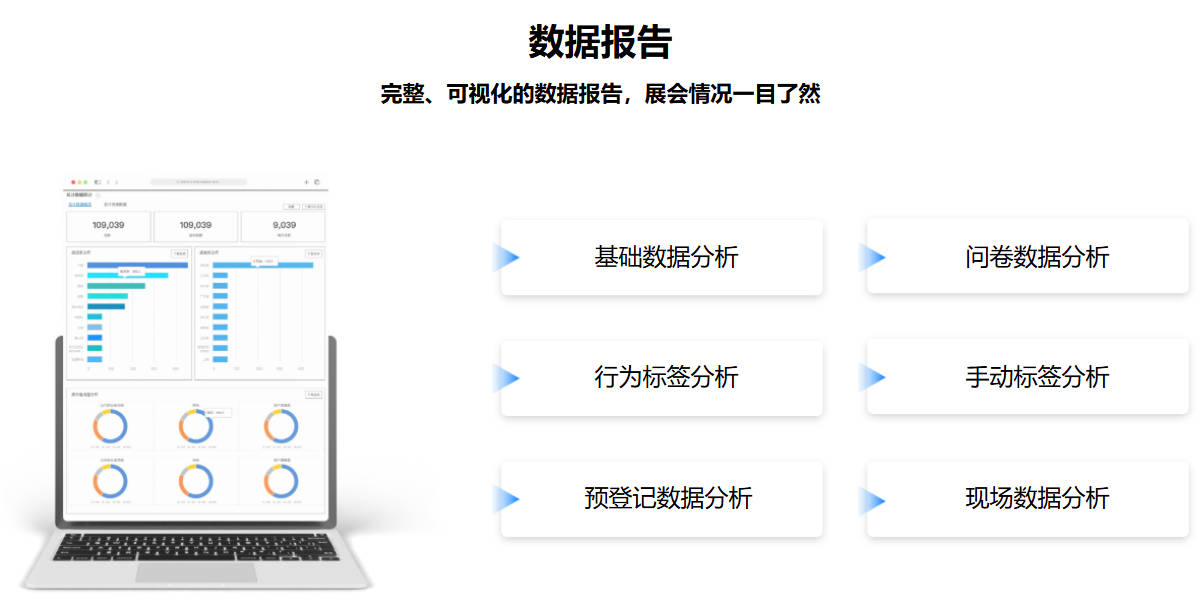 数据报告单一:系统仅能提供参会人数等基础统计,无法生成关于观众行为、兴趣偏好的深度分析报告,难以为下届会展优化提供决策依据。