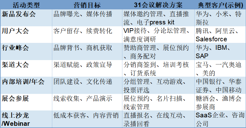 在数字化营销时代,活动已成为企业连接客户、传播品牌、获取商机的最重要触点。31会议以"31轻会+31大会易"的产品组合,