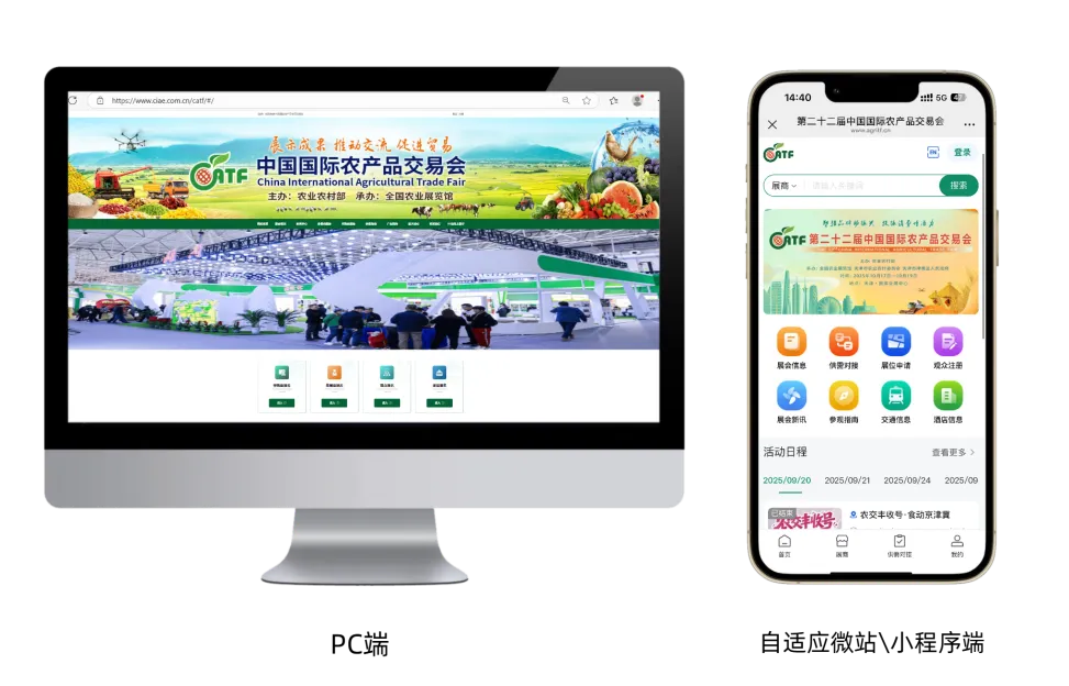 平台除整合展会日程、参观指南、交通酒店等基础服务信息外,还融入展商注册报名、观众登记、展览云等核心功能系统,参会者无需切换多平台,即可完成从信息查询到报名参与、从展商资质提交到展位申请的全流程操作,真正实现农交会 “一站式信息管理与服务”。
