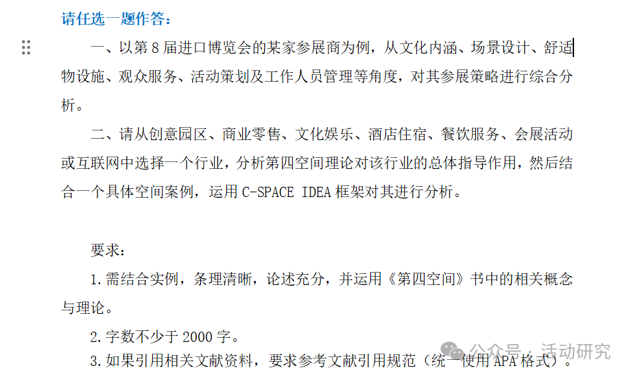 今天花了半天时间批改《第四空间》的期末作业,许多同学都选择了第一道题,利用C-SPACE IDEA框架分析了某家企业参加进博会的策略,少数同学还亲自到现场考察,做到了有感而发、图文并茂。