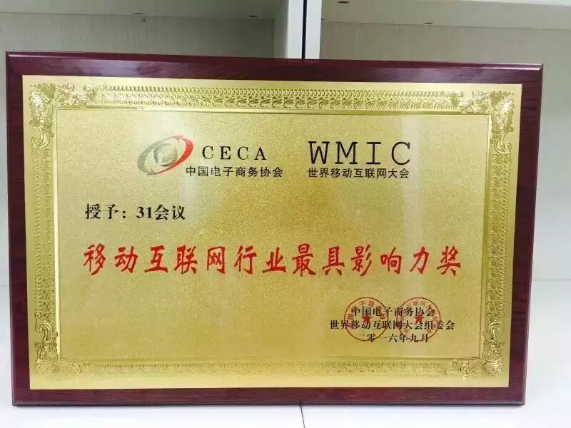 9月13日,在2016北京全国政协大礼堂举行的世界移动互联网大会(WMIC)上,31会议荣获移动互联网行业最具影响力奖,并因此成为会议服务行业唯一获此殊荣的企业。