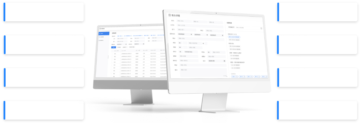 ![]() | 观众标签 手动标签支持自定义自动标签是系统设置的行为标签,例如注册方式、注册来源、注册年份等 组合查询 系统支持多条件组合查询。例如,您可以查询“来自中国且报名成功的观众”,快速从数据库中筛选出目标群体,以便进行进一步的营销活动。 高级查询 支持更复杂的查询条件。例如,您可以搜索“人群类别为专业观众,报名状态为已报名且手机号不为空”的数据,进行打标及批量营销等。 |