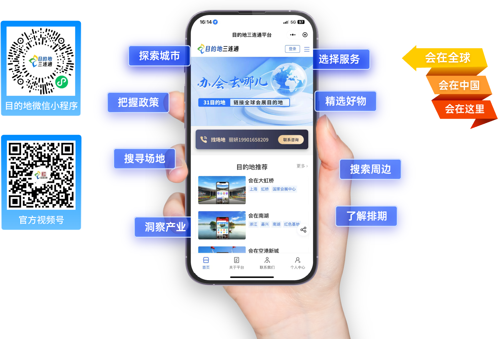通过数字目的地平台,进入31会议的推荐目的地,链接30万主承办。 |