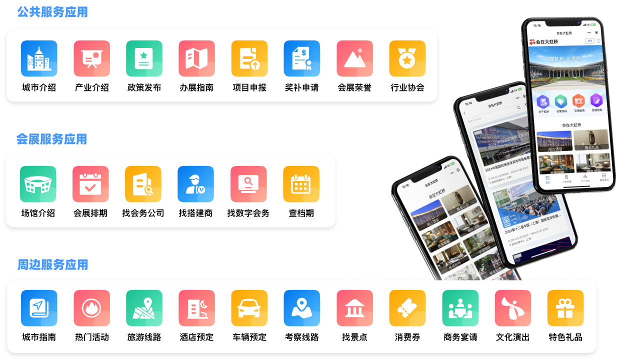 会在西安空港新城 会展办/促进中心版 | 会在大虹桥 大馆/目的地城市区域版 | 会在南湖 目的地城市独立运营版 |